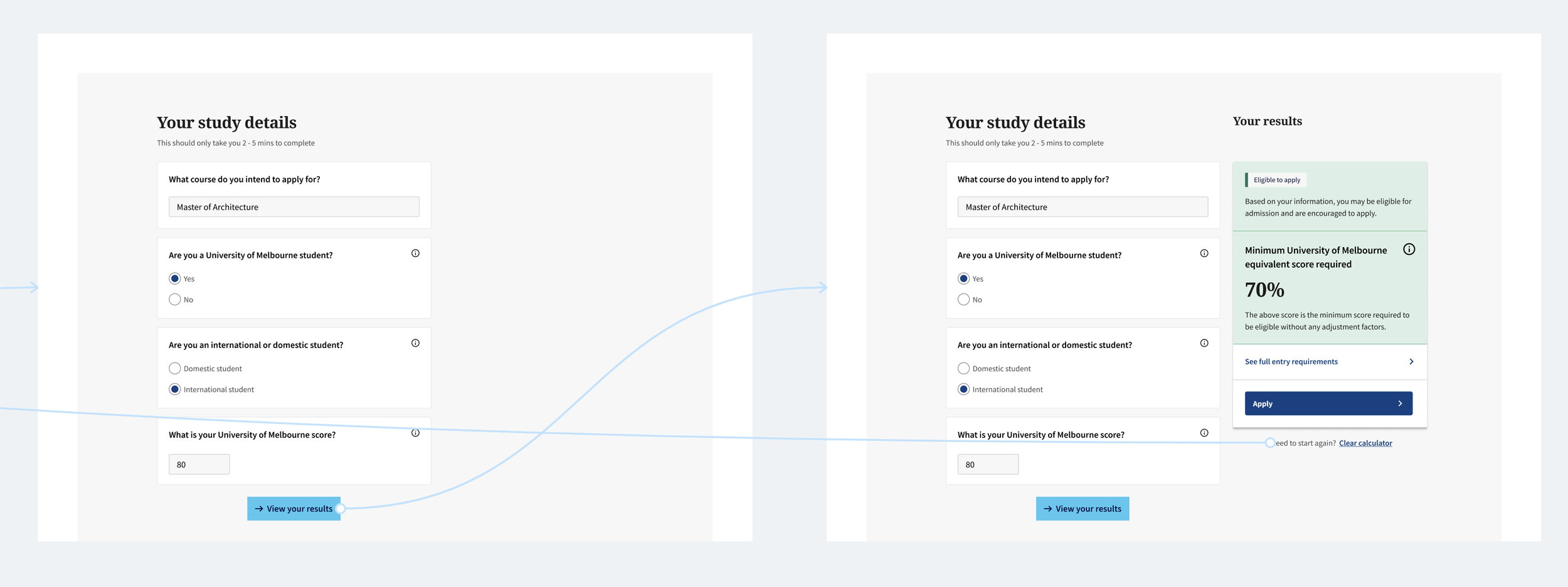 We tested the end-to-end user journey and each outcome screen and message with potential applicants, the admissions team, and verified with our stakeholders and knowledge leaders.